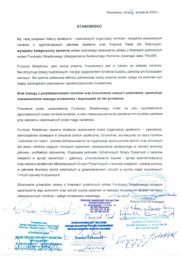 Na zakończenie spotkania Rada Krajowa podjęła uchwałę w sprawie kontynuacji działań na rzecz ochrony polskiego rolnictwa, w tym intensyfikacji współpracy z resortem rolnictwa oraz organizacjami branżowymi. Przewodniczący Marek Duszyński podziękował wszystkim uczestnikom za zaangażowanie i podkreślił, że przyszłość polskiej wsi zależy od jedności i aktywności środowisk rolniczych.
